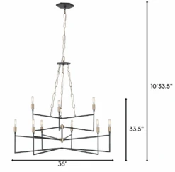 Lamping: 9 x 60W Candelabra, Not Included